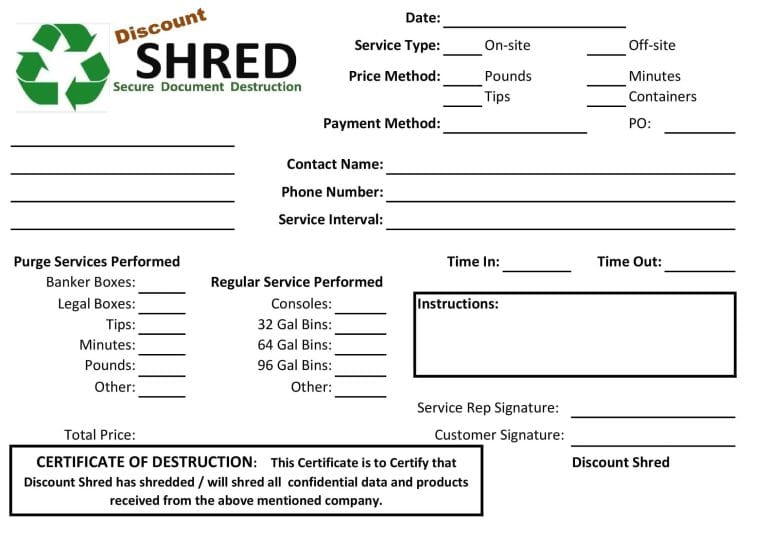 Discount Shred Utah takes data security seriously and handles the destruction of sensitive information with professionalism and care. After each shredding service, we promptly provide a Certificate of Destruction as clear confirmation that your confidential materials have been securely destroyed.This certificate is an essential record for your files, verifying that Discount Shred has upheld its commitment to protecting your information and helping you remain compliant with privacy regulations. It provides reassurance that your data has been fully eliminated and is no longer at risk.